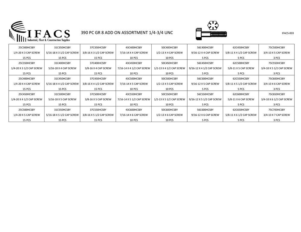 | 37C350HCS8Y | 3/8-16 X 3 1/2 HEX CAP SCREW GR 8 ZY | 15 |