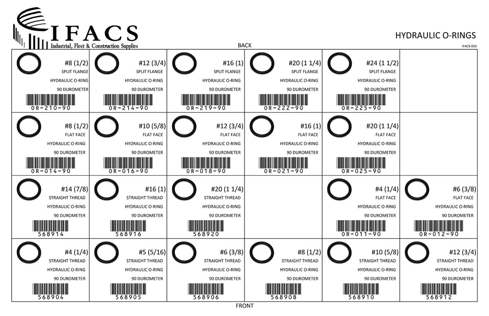 | OR-012-90 | 3/8 FLAT FACE HYD O-RING 90 DURO | 50 |