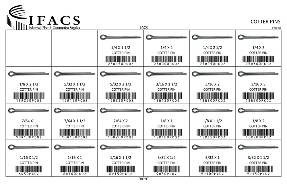 | 12R150PCOZ | 1/8 X 1 1/2 COTTER PIN ZN | 50 |