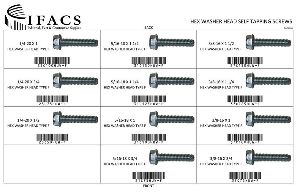 | 37C75HUW-F | 3/8-16 X 3/4 UNSLOTTED HWH TYPE F | 25 |
