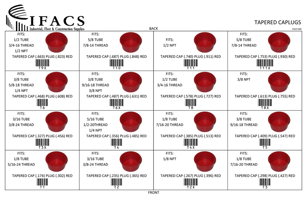 | T1 | TAPERED CAP (.174) PLUG (.302) RED | 50 |