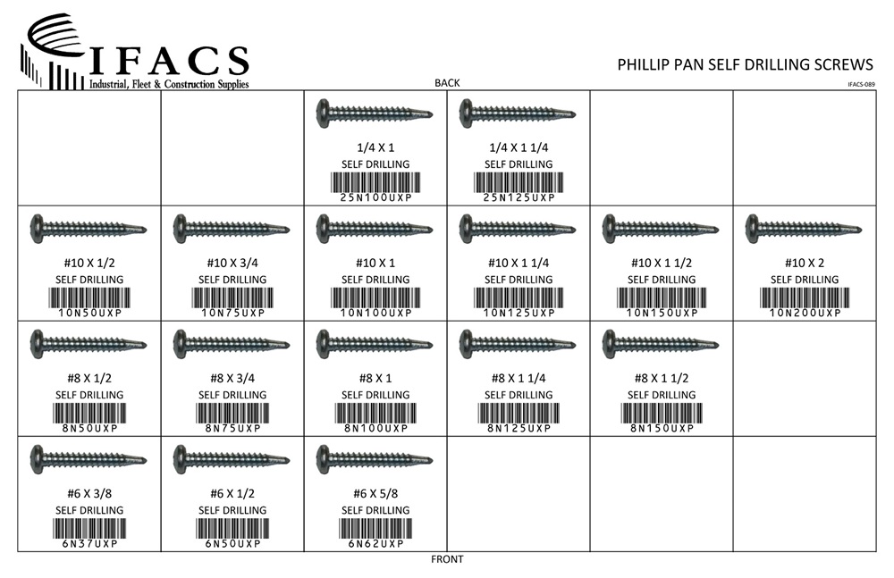 | 6N37UXP | #6 X 3/8 PAN PHIL SELF DRILLING ZN | 100 |