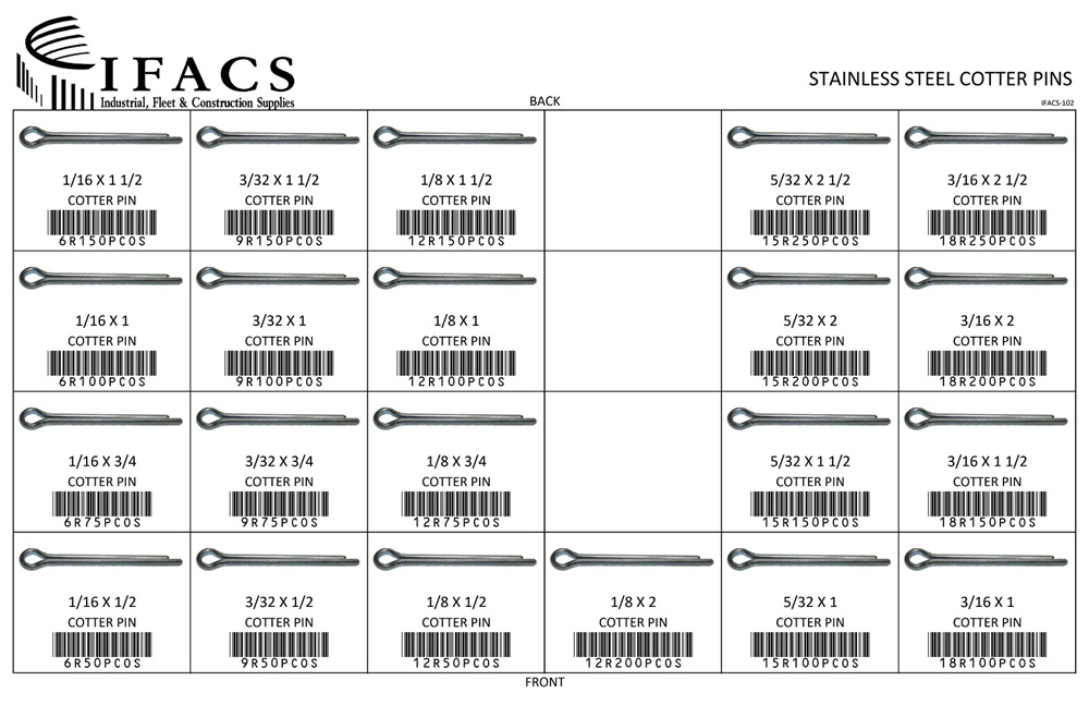 | 18R100PCOS | 3/16 X 1 COTTER PIN SS | 25 |