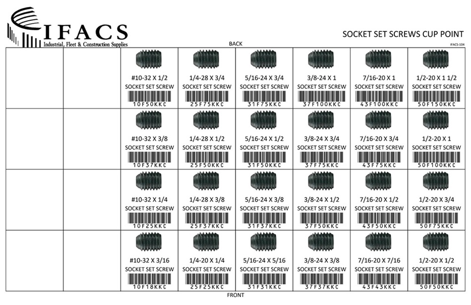 | 10F18KKC | 10-32 X 3/16 SOCK SET SCREW CUP PT | 25 |