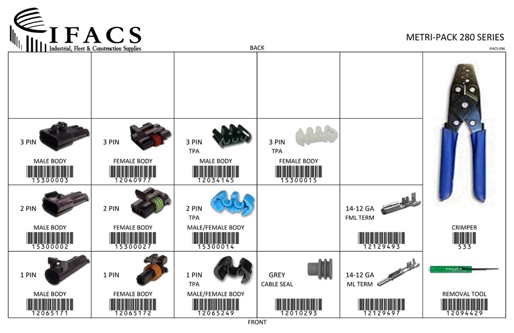 | 15300014 | 2 PIN TPA MALE/FEMALE 280 METRI-PACK | 20 |