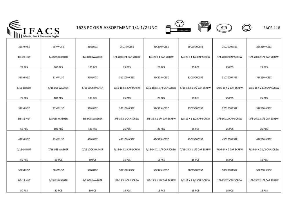 | 37C150HCS5Z | 3/8-16 X 1 1/2 HEX CAP SCREW GR 5 ZINC | 25 |