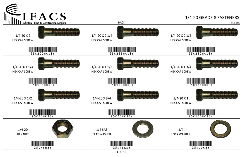 | 25C125HCS8Y | 1/4-20 X 1 1/4 HEX CAP SCREW GR 8 ZY | 20 |