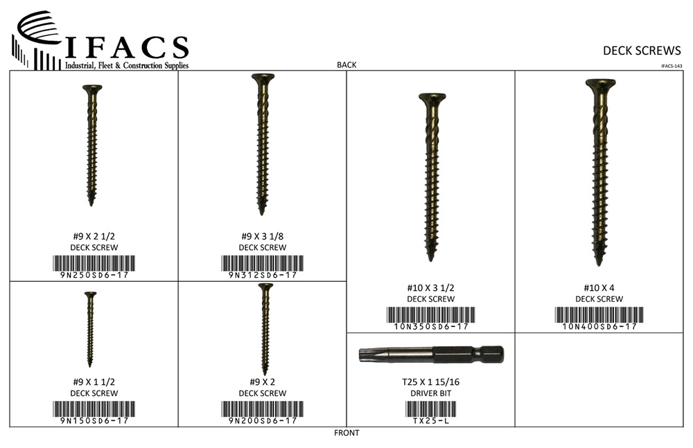 | 9N150SD6-17 | 9 X 1 1/2 6-LOBE DECK SCREW TYPE 17 T25 | 200 |