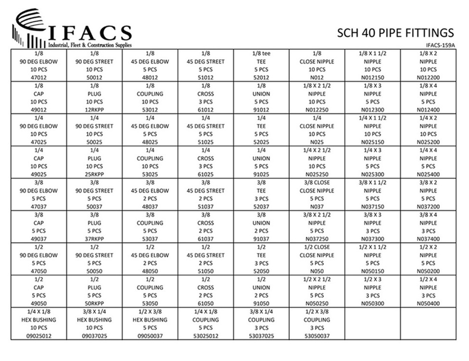 | 50037 | 3/8 MALL IRON 90 STREET ELBOW SCH 40 | 5 |