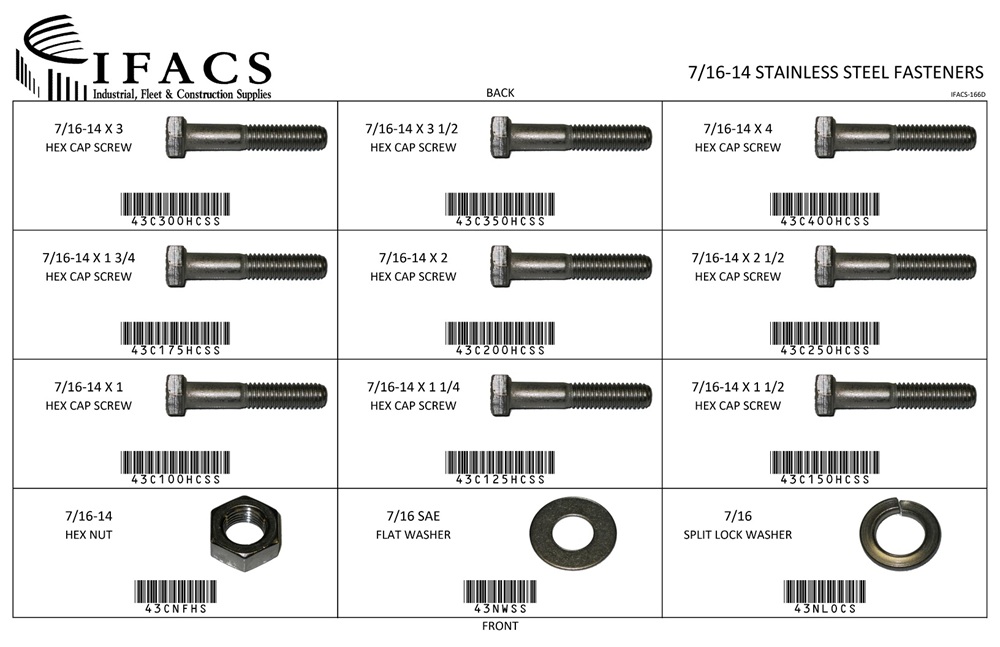 | 43C100HCSS | 7/16-14 X 1 HEX CAP SCREW 18-8SS | 10 |