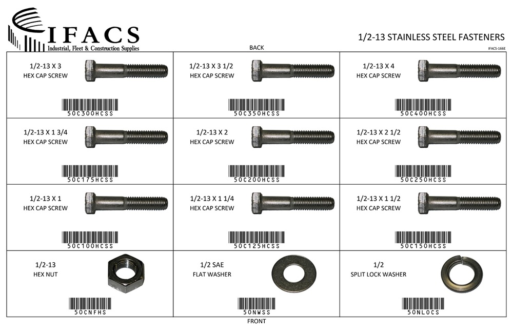 | 50C100HCSS | 1/2-13 X 1 HEX CAP SCREW 18-8SS | 10 |