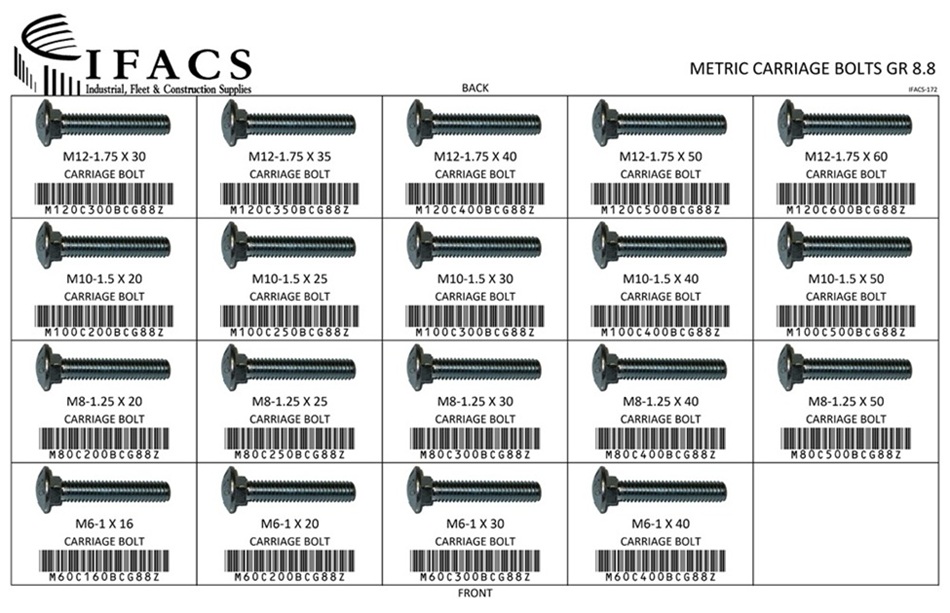 | M100C300BCG88Z | M10-1.5 X 30 CARRIAGE BOLT GR 8.8 ZN | 15 |
