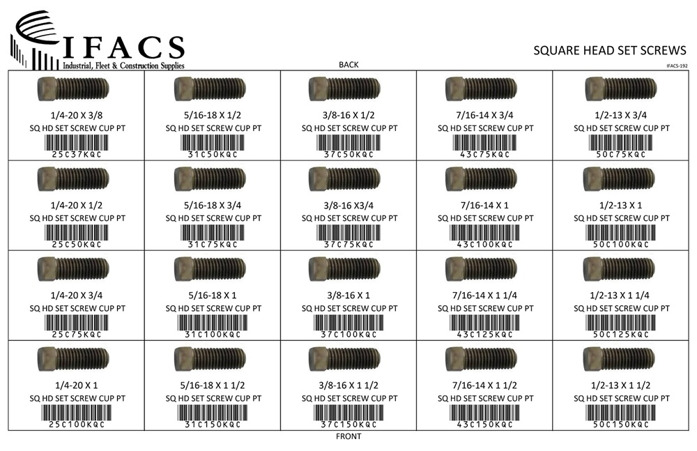 | 31C50KQC | 5/16-18 X 1/2 SQ HD SET SCREW CUP PT | 20 |