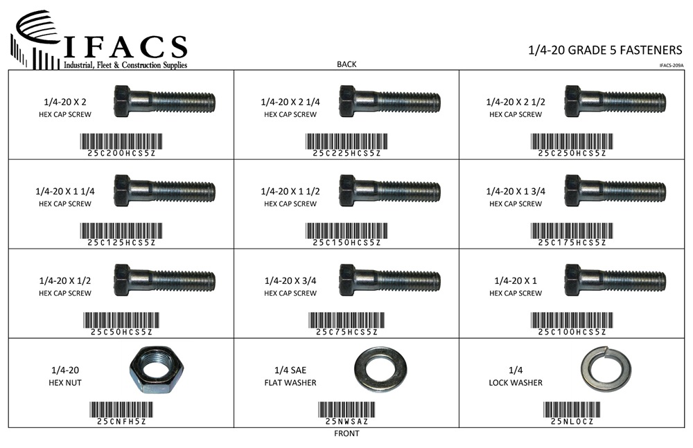 | 25C50HCS5Z | 1/4-20 X 1/2 HEX CAP SCREW GR 5 ZINC | 25 |